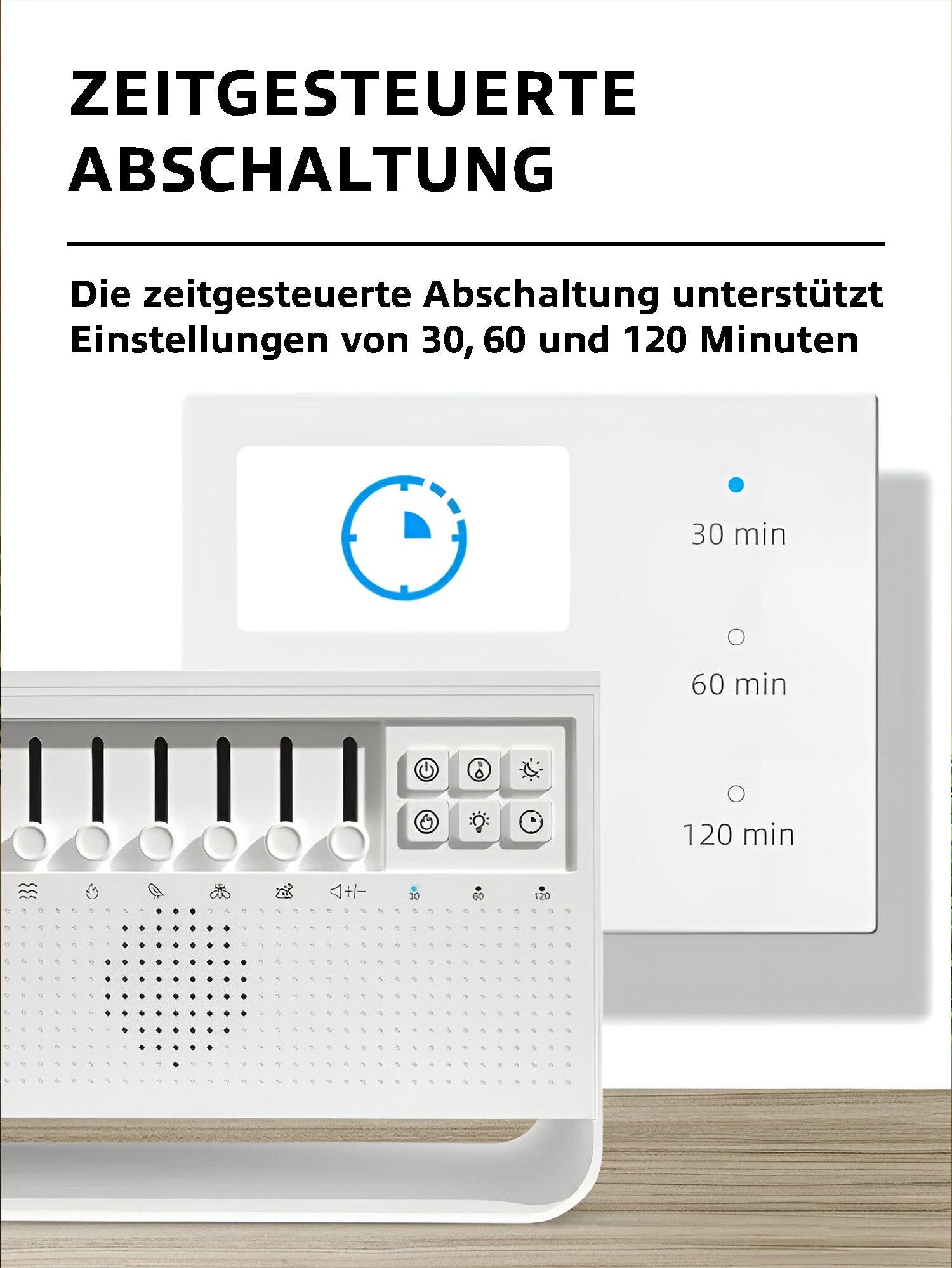 Die Naturklänge helfen dabei den Kopf aszuschalten, sei es Stress, Panik, Angst oder einfach nur unruhe, die 8 verschiedenen Einstellung helfen deinem Körper zu entspannen.