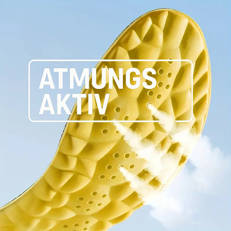Das weiche Material reduziert Aufprallkräfte und entlastet die Plantarfaszie – für weniger Schmerzen beim Gehen.